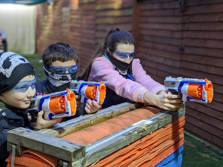 Nerf games for one hour, up to 12 people, instructor led with obstacle