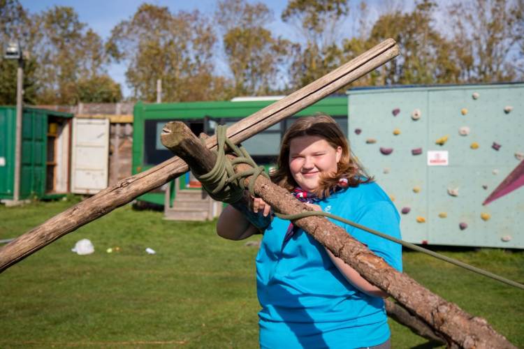 Pioneering involves designing and constructing equipment using poles, ropes and guy lines.